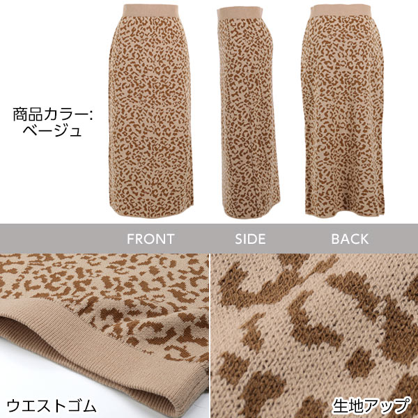 ニット素材で暖かさ◎カジュアルに着こなせるレオパード柄ニットスカート登場!【素材・サイズ感】低身長さんならロング丈、高身長さんならアンクルが出る絶妙な丈感でお楽しみ頂ける1枚。