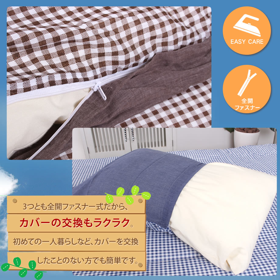 10,000円以上で送料無料!同梱商品を探すならこちら 〜1,000円 1,001〜2,000円 2,001〜3,000円 3,001〜4,000円 4,001〜5,000円 5,001〜6,000円レッド ▲ZOOM ▲ZOOM ▲ZOOM ネイビー ▲ZOOM ▲ZOOM ▲ZOOM グリーン ▲ZOOM ▲ZOOM ▲ZOOM ブラウン ▲ZOOM ▲ZOOM ▲ZOOM グレー ▲ZOOM ▲ZOOM ▲ZOOM 組成タグ等 ▲ZOOM ▲ZOOM ▲ZOOM 商品詳細 サイズ 掛カバー:150cm×210cm 敷カバー:105cm×215cm まくらカバー:43cm×63cm 組成 ポリエステル65%、綿35% 寸法変化率 タテ−1%、ヨコ−1%(JIS.L-1096G) メーカー 株式会社アルファ 生産国 中国製 商品仕様 全開ファスナー、掛カバー布団固定紐8箇所付き 商品説明 シャンブレー生地を使用したカバー3点セットです。