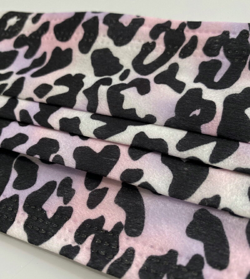 ヒョウ柄がデザインされた使い捨てマスク!リクエストの多かったピンクのヒョウ柄も入荷!とってもオシャレで、コーディネートにバッチリ!マスク10枚入りで50枚入りのボックスよりも、携帯ができて便利です。